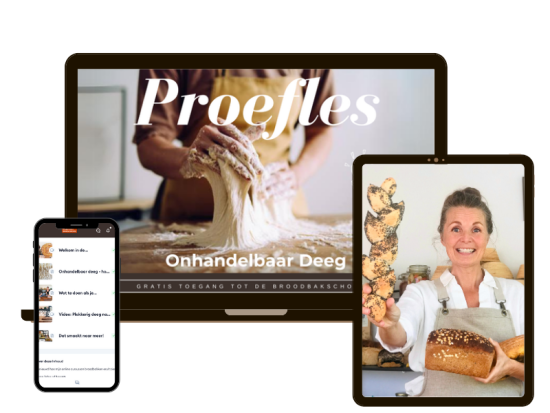 In de online broodbakschool ontdek je mijn methode om in een handomdraai soepel deeg te kneden. Bekijk het lesmateriaal wanneer en zo vaak je maar wilt! Zonder irritante reclames. Handig hè?